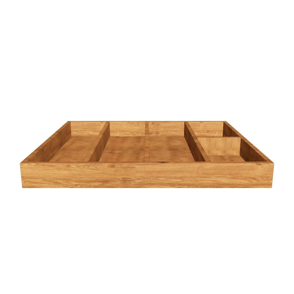Notes: A standard Utensil tray with 3 Long and 2 short compartments for Knives, Forks, Spoons, etc and one Horizontal compartment for teaspoons - can be combined with spice drawer inserts, knife blocks etc.